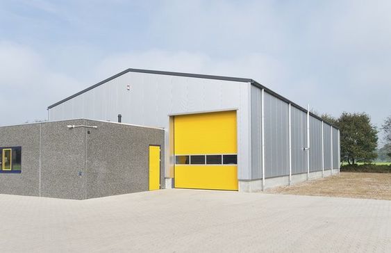 هي الأكثر شيوعا حيث تصنع من هياكل فولاذية قوية تغطى بألواح الصاج المجلفن أو الساندوتش بانل وهي مناسبة للمخازن والمعارض والمستودعات
